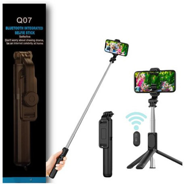 پایهی مونوپاد Q07 با طول حداکثر100سانتیمتر، ابزاری مناسب برای عکاسی سلفی با گوشیهای موبایل اندروید و آیفون است. این محصول بدنهای از جنس فلزی دارد. کمترین طول هم در حالتی که تمام تکهها جمع شدهاند، 19.5 سانتیمتر است. این محصول به لطف گریپ پلاستیکی، بهراحتی در دست نگهداشته و کنترل میشود. قسمت نگهدارندهی گوشی، به پایهای متصل شده که از قابلیت چرخش 360 درجه و خموراستشدن برای تنظیم زاویهی دلخواه برخوردار است. افرادی که به گرفتن عکس سلفی تمایلی ندارند، میتوانند آن را در حالت سه پایه قرار دهند و به کمک ریموتکنترلی که روی بدنهی مونوپاد قرار گرفته و قابل جداشدن از بدنهی مونوپاد است، اقدام به عکاسی کنند. ریموت کنترل آن با گوشیهای اندروید نسخهی 4.3 و iOS نسخهی 6.0 به بالا سازگار است.هنگام بازدید از یک موزه یا یک بنای تاریخی قطعاً شما ترجیح میدهید که تصاویر واضحتری از فضای اطراف خود داشته باشید و به همین دلیل دیگر سلفی گرفتن با دستان خالی گزینهای مناسب برای این نوع از عکاسی نیست. مونوپاد ها برای همچین شرایطی گزینهای عالی هستند.اما حمل مونوپاد ها را میتوان مشکل عمده آنها دانست که اغلب از وزن زیادشان ناشی میشود،بسیاری از افراد هستند که از گوشی خود برای تماستصویری، آموزش تصویری، شرکت در ویدیو کنفرانس، لایو در شبکههای اجتماعی، ضبط کلیپ و مواردی از این دست استفادههای بسیار زیادی میکنند. برای این موضوع این افراد همیشه به دنبال جایی یا جایگاهی هستند که گوشی خود را در آن قرار دهند و گوشی به صورت ثابت و بدون حرکت باشد تا حاصل کار آنها تصویری بدون لرزش و با کادربندی خوبی از آب درآید. برای بهدست آمدن این ویژگیها میتوانید از سه پایه نگهدارنده گوشی موبایل مدل Q07 استفاده کنید. این هولدر دارای سه عدد پایه است که باعث تثبیت گوشی میشود. تنها کاری که شما باید انجام دهید این است که گوشی را روی این پایه تنظیم کنید و در پشت میز خود بنشینید و به کار خود بپردازید یا آن را روی میز قرار دهید و ایستاده به آموزش بپردازید. گفتنی است این محصول برای گوشیهایی تا اندازه 6.5 اینچ مناسب خواهد بود.