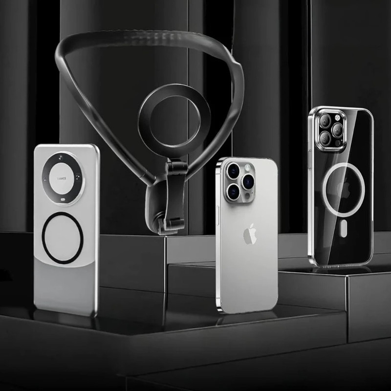 این نگهدارنده موبایل یک طراحی انعطاف پذیر، باکیفیت و با دوام دارد و می تواند به گونه ای تنظیم شود تا به صورت ایمن و مطمئن در اطراف گردن شما قرار گیرد. چسپندگی محکم آن تضمین می کند که تلفن شما در جای خود باقی می ماند و به شما این امکان را می دهد که بدون نگرانی آزادانه حرکت کنید و از آن برای تولید محتوا، تیراندازی و یا سایر کارهای در حال حرکت استفاده کنید. این هولدر گردنی با طیف گسترده ای از دستگاه ها از جمله آی فون، سامسونگ کهکشان، Huawei، LG و ... سازگار می باشد و همراه آن حلقه فلزی وجود دارد تا بتوان از آن برای تمامی مدل های تلفن همراه استفاده کرد. این هولدر مغناطیسی به شما اجازه می دهد تا به راحتی زاویه دید را تغییر دهید، این موضوع برای سازندگان محتوا که نیاز به انعطاف پذیری در ضبط از زوایای مختلف دارند، بسیار مناسب و کاربردی است. با فشار دکمه اتصال، شما به راحتی می توانید نگهدارنده را به گردن خود وصل و یا جدا کنید، این ویژگی در طول استفاده روزمره بسیار کاربردی می باشد. برای امنیت بیشتر در طول فعالیت های فیزیکی سبک، یک بند داخل جعبه گذاشته شده است که باید آن را وصل کنید تا هیچ نگرانی بابت افتادن موبایل نداشته باشید. استفاده از این هولدر گردنی برای ورزشهای با شدت بالا مانند پرش قوی (در حال دویدن سریع و غیره) توصیه نمی شود. برای تولید محتوا، ورزش های سبک، فعالیت های روزمره و ... توصیه می شود.
