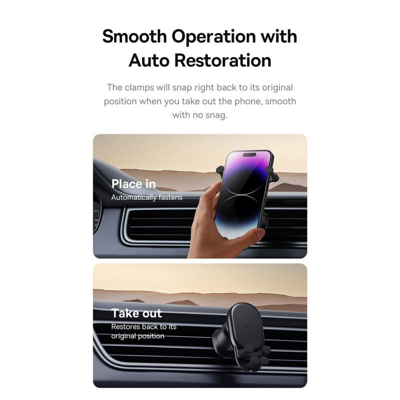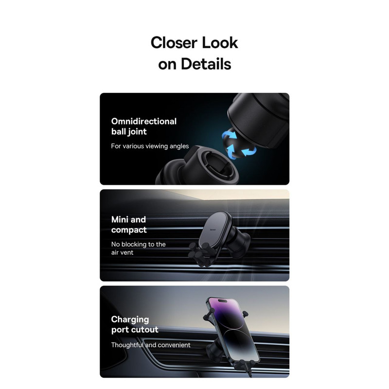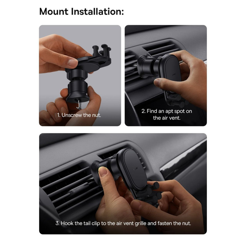 طراحی این هولدر دریچه موبایل خودرو بیسوس برای نصب در دریچه خودرو بوده و با استفاده از گیرهای که دارد به راحتی در دریچه هوای خودرو نصب میشود. سه بازوی در اطراف آن قرار گرفته و با ایجاد حالتی مثلثی شکل گوشی را کاملا محکم در خود نگه میدارد و مانع افتادن آن میشود. سر بازوها با پوششی از پلاستیک نرم پوشیده شده تا موبایل را در طول سفر ثابت و محکم نگه دارد. در ضمن با توجه به نیروی گرانشی که از آن برخوردار است با کمک یک دست میتوانید به راحتی موبایل خود را درون آن قرار دهید.
