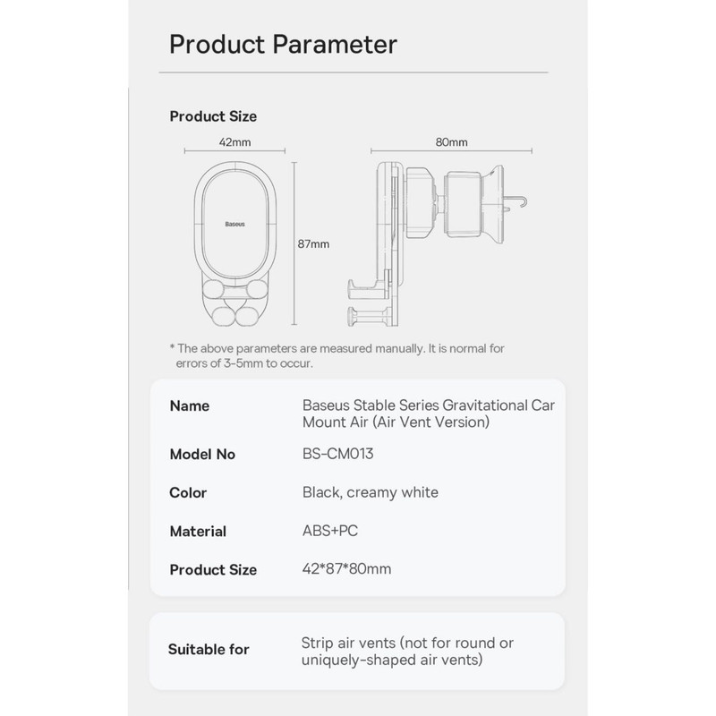 محصولی با عنوان تجاری Baseus Stable Series air vent car holder SUWX020001 توسط کمپانی بیسوس طراحی شده و در رانندگانی ایمن بسیار کمککننده است؛ قابل نصب در دریچه کولر خودرو است. مینیمال است و بدنهای مقاوم دارد.