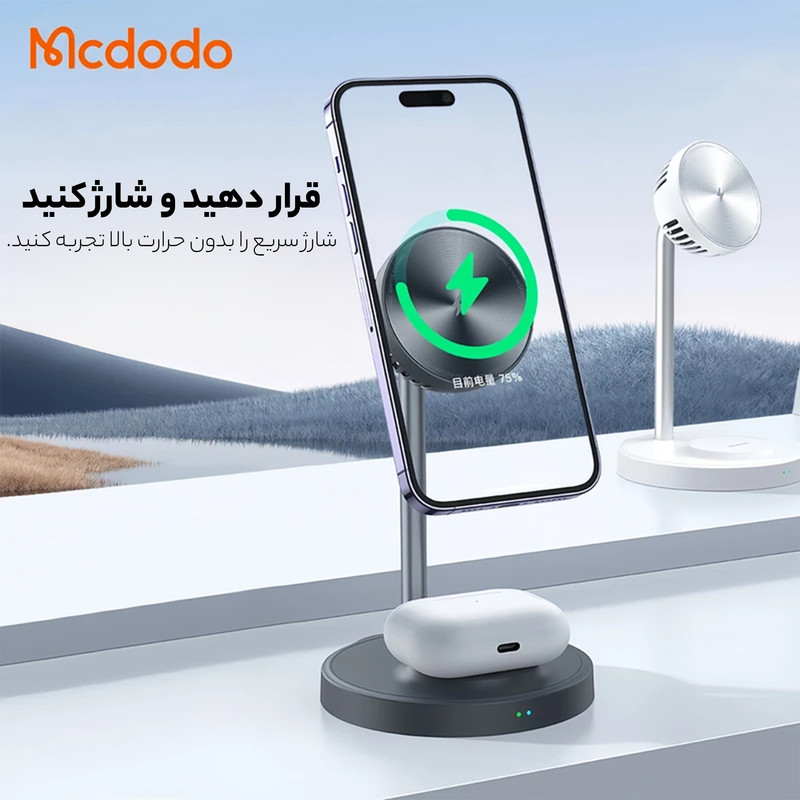 استند شارژر بی سیم مک دودو مدل CH-2151 یک محصول پیشرفته و منحصربهفرد است که با طراحی هوشمندانه و چندمنظوره خود، نیازهای کاربران مدرن را به بهترین شکل ممکن برطرف میکند. این شارژر با توان خروجی 15 وات و ویژگیهای خاصی مانند پایه مغناطیسی قوی و سیستم خنککننده پیشرفته، تجربهای بینظیر از شارژ سریع و ایمن را برای دستگاههای شما فراهم میکند.