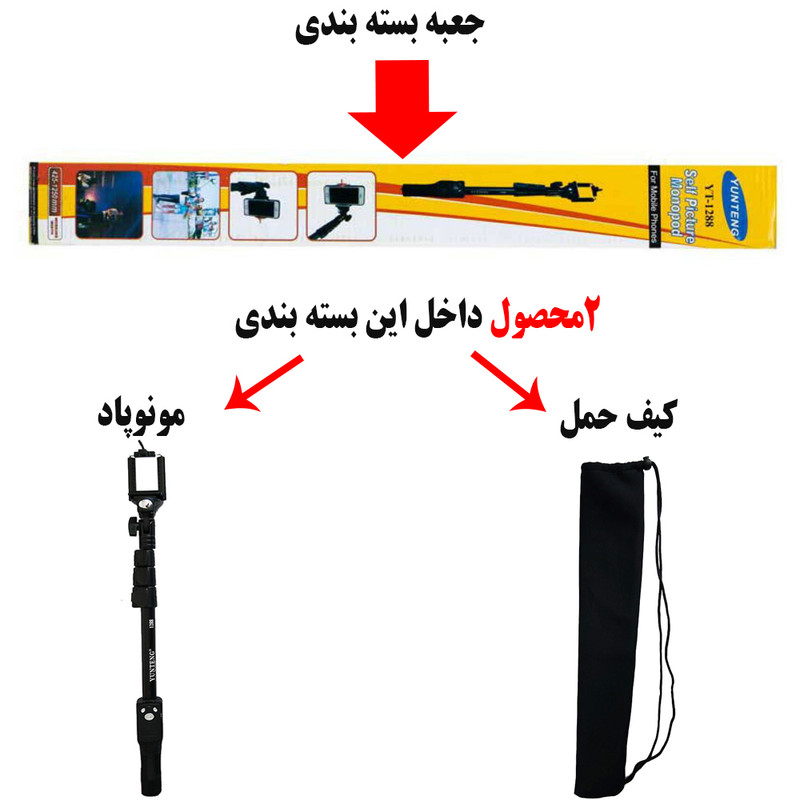 عکاسی سلفی برای بسیاری از افراد محبوب است؛ به همین خاطر، هر وسیلهای که به جذابتر و آسانتر شدن این سبک عکاسی کمک کند، سریعا مورد استقبال قرار میگیرد و به مد تبدیل میشود. یکی از وسایلی که در چند سال اخیر، تب استفادهی آن بسیار داغ شده، مونوپاد است. استفادهی مونوپاد در دنیا بهقدری زیاد شده که دیدن فردی که در قسمتی از طبیعت یا کنار جاذبهی گردشگری در حال خودنگاری است، هرگز جای شگفتی ندارد. یکی از شرکتهای فعال در فروش پایههای نگهدارندهی گوشی در کشورمان، شرکت یانتنگ است. YT-1288 نام یکی از مونوپادهای باکیفیت و مقرونبهصرفهی این شرکت چینی است. این مونوپاد دارای سه ضامن است که با بازکردن آنها میتوان طول این وسیله را تا 1.25 متر افزایش داد؛ همچنین این دستگاه دارای ریموت قابل جداشدن است و با گوشیهای با سیستمعامل iOS 6، اندروید 4.3 و جدیدتر سازگار است؛ البته باید این موضوع را در نظر داشته باشید که تنها میتوان با گوشیهای کوچکتر از 6.5 اینچ یا عرض کمتر از 7.3 سانتی متر با این مونوپاد کار کنید.به همراه کیف حمل مونوپاد برای محافظت دائمی و هم برای حمل آسان مونوپاد،ممکن است کلید های زوم در بعضی از مدل های گوشی های اندرویدی کار نکند و با گرفتن آنها عکس گرفته شود، این دلیل خرابی مونوپاد نیست در این مدل های ممکن است این قابلیت وجود نداشته باشد یا نیاز به تنظیم دستی در تنظیمات گوشی موبایل برای فعال کردن آن باشد.همینطور در هیچ یک از گوشی های با سیستم عامل IOS کلید های زوم کار نمی کند.