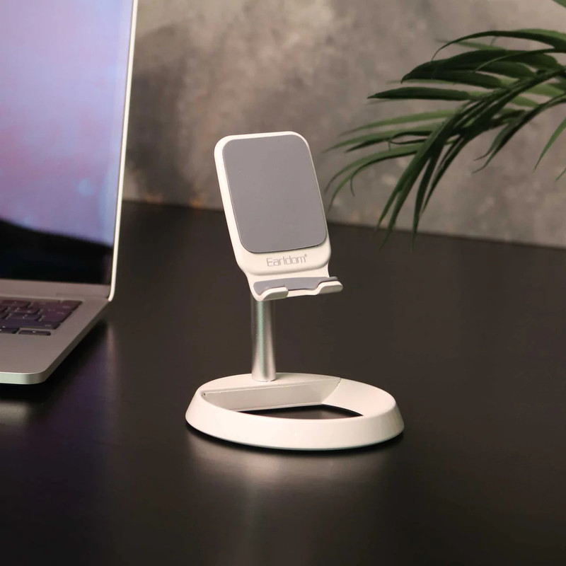 هولدر رومیزی موبایل و تبلت Earldom مدل EH138 یک پایه نگهدارنده گوشی محصولی برای کمک شما در سرگرمی و کار جهت استفاده بر روی میز به منظور تماشای فیلم و … با استفاده از مواد با کیفیت بالا در رنگ سفید و نقره ای میز کار شما را زیبا و چشم نواز میکند.هولدر رومیزی موبایل و تبلت Earldom مدل EH138 یک نگهدارنده گوشی سازگار با 99٪ تلفنهای همراه و تبلت ها است این هلدر دارای پایه پهن ، قوی و محکم است که می تواند وزن بالایی را تحمل کند. این استند با طراحی ارگونومیک ساخته شده و از بهترین مواد با ساختاری ضد لغزش و محکم سازگاری چندگانه برای حمل با خود گزینه بسیار عالی بشمار می اید. این وسیله پر کاربرد برای مصارفی همچون تماشای فیلم های آنلاین و آفلاین ، درس خواندن ، اجرای لایو ، انواع بازی با رایانه لوحی یا تلفن خود داشته باشید؛ حتی میتوانید همزمان گوشی خود را به شارژ متصل کنید.