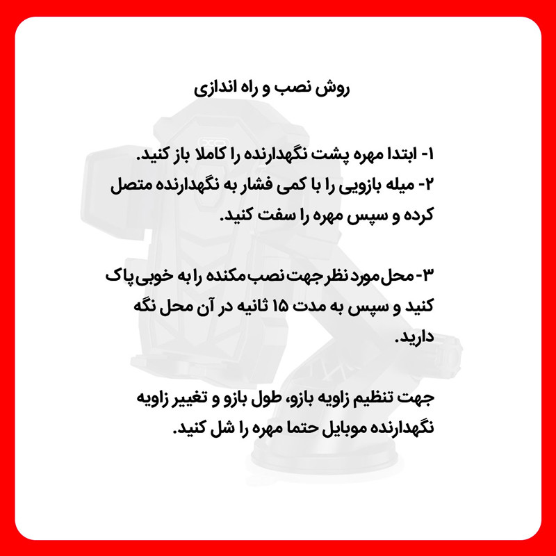 یکی از دغدغههای اصلی همه رانندگان، به خصوص کسانی که در آژانس یا اسنپ کار میکنند، دسترسی مستقیم به گوشی موبایل است. نیاز به برنامههای مسیریابی باعث شده است که اهمیت داشتن هولدر یا پایه نگهدارنده بسیار بالا رود. پایه نگهدارنده مدل XO-C76 با قابلیت چرخش 360 درجه و نصب محکم و مقاوم روی داشبورد، کنسول و شیشه ماشین خیال همه را راحت کرده است و دیگر نیاز نیست نگران افتادن گوشی موبایلتان باشید. این محصول دارای بازویی قابل تنظیم است که میتوانید آن را در جهت دلخواه تنظیم کنید. همچنین برای نصب محصول ابتدا محل موردنظر را از گردوغبار پاک کرده و سپس نصب کنید و تا چند روز جابهجا نکنید تا کاملا بچسبد.