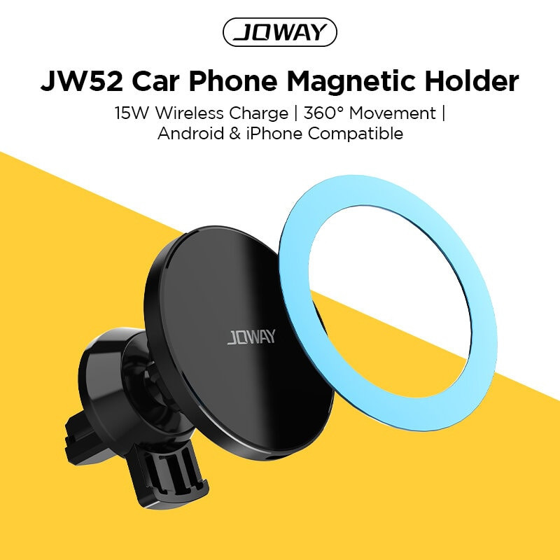 هلدر ماشین مدل jw52 با قابلیت شارژ بی سیم از ظریف ترین و باکیفیت ترین هلدرهای جووی میباشد.قابلیت گردش 360 درجه دارد و خروجی آن 15w است. ای هلدر برای انواع گوشی های دارای قابیلت وایرلس شارژ مناسب است.