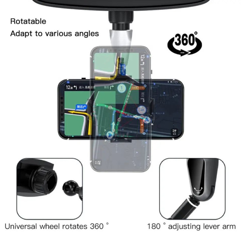 این هولدر موبایل قابلیت اتصال به آینه میانی داخل خودرو را دارد. صفحه اصلی آن قابلیت چرخش دارد و بازوی مفصلی آن به بالا و پایین حرکت می کند. قطر صفحه دایره ای شکل 6 سانتی متر است و بازوهای کناری آن به راحتی برای انواع سایز موبایل باز می شوند.