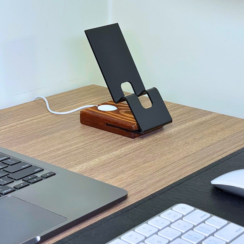 طراحی زیبا و مینیمال این پایه با ترکیب چوب طبیعی و سطح مشکی براق، جلوهای شیک و هماهنگ با دکوراسیون منزل یا محیط کار ایجاد میکند. به همین دلیل، این پایه تنها یک استند ساده برای موبایل و ساعت هوشمند نیست، بلکه یک اکسسوری مدرن و کاربردی است که علاوه بر نظمبخشی، به میز شما زیبایی و جلوهای خاص میدهد. کاربران میتوانند با قرار دادن شارژر وایرلس ساعت هوشمند یا ایرپاد در جایگاه مخصوص این محصول، به راحتی دستگاههای خود را شارژ کرده و از یک تجربه منظم، شیک و بدون دردسر لذت ببرند.