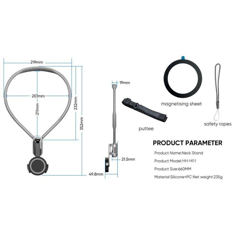 این هولدر با استفاده از پلاستیک مقاوم ABS و سیلیکون نرم ساخته شده که علاوه بر دوام بالا، وزن سبکی دارد و فشاری به گردن شما وارد نمیکند. بازوهای انعطافپذیر آن به راحتی به هر شکلی درمیآیند تا بتوانید بهترین زاویه دید را برای خود تنظیم کنید.