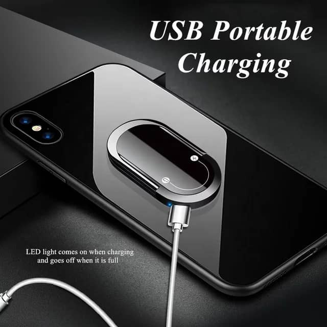 این هولدر جدید کوچک بسیار کاربردی و شکیل بوده و دارای ابعاد کوچک و وزن کم می باشدو دارای یک جعبه بسیار زیبا برای هدیه دادن میباشد. دارای باتری داخلی قابل شارژ بوده که با بالا و پایین کشیدن درپوش آن روشن و خاموش می شود. این وسیله برای افرادی که سیگار می کشند بسیار کاربردی بوده و با استفاده از آن دیگر نیاز به همراه داشتن فندک که گاز آن بسیار خطرناک می باشد ندارند و ظرف 2 تا 3 ثانیه سیگار را روشن می کند. همچنین دارای یک آویز است که می توان از طریق آن گوشی را نگه داشت و یا به عنوان یک تکیه گاه گوشی از ان استفاده کرد و به تماشای فیلم نشست. چسب پشت این هولدر بسیار قوی بوده و پس از چسباندن به گوشی به سختی قابل جدا کردن است. وزن آن حدود 45 گرم است و بنابراین سبب سنگین شدن گوشی نمی شود.جنس بدنه فلزی بوده و به همین دلیل به هولدهای مگنتی روی داشبورد اتومبیل محکم می چسبد.