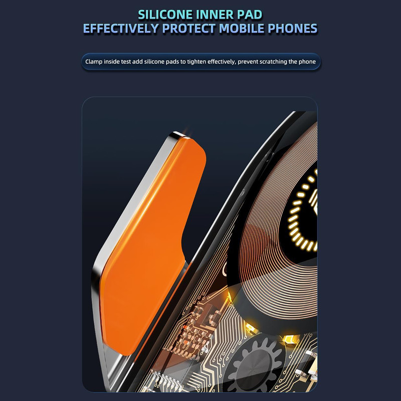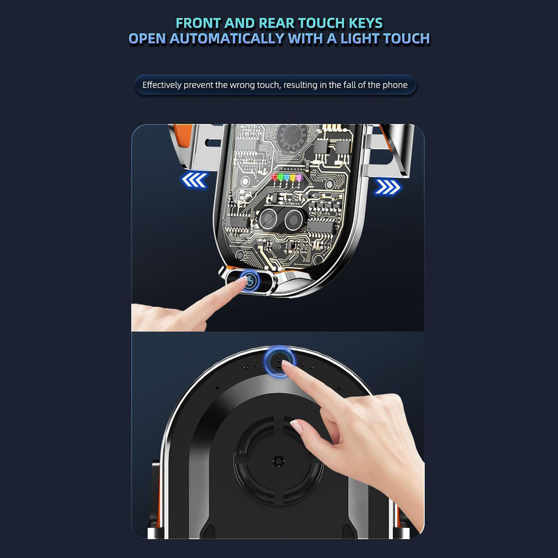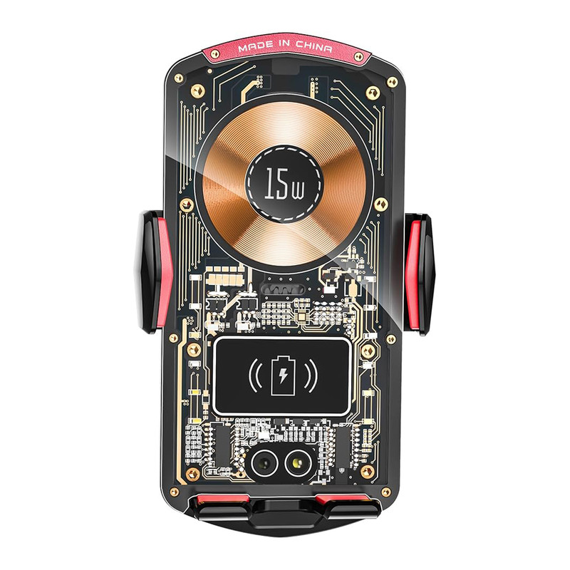 هولدر فست شارژ وایرلس با گیره اتوماتیک مدل A6 با طراحی زیبا، بر خلاف پایه های سنتی گوشی های هوشمند از آلیاژ آلومینیوم ساخته شده. این شارژر بیسیم از آلیاژ آلومینیوم با بافت مجلل ساخت شیشه شفاف ساخته شده است و میتوان گوشی موبایل را به سادگی با قرار دادن آن در هولدر به صورت بیسیم شارژ کرد. این محصول دارای یک سنسور مجاورت و یک موتور الکتریکی داخلی است که به طور خودکار گیره را باز، بسته و محکم می کند. برای نصب و برداشتن آسان با فشار یک دکمه لمسی که در پشت هولدر تعبیه شده گیره باز و بسته می شود که این روش برای کسانی که به روش نصب و حذف بدون استرس اهمیت می دهند توصیه می شود.